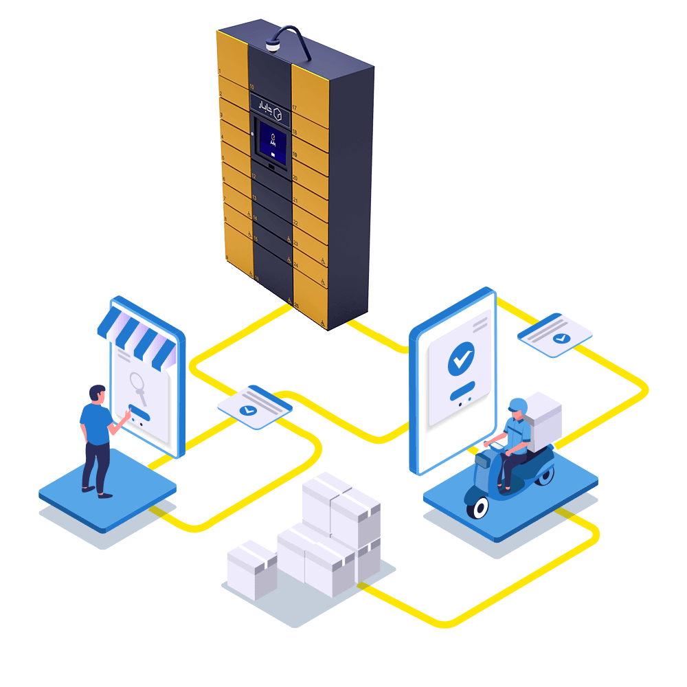 تنها با کلیک روی لینک پیامک‌شده، کاربر لاکر مناسب را روی نقشه انتخاب می‌کند و بازه زمانی دریافت را تعیین می‌نماید. مرسوله در لاکر بارگذاری شده و کد برداشت برای گیرنده ارسال می‌شود.